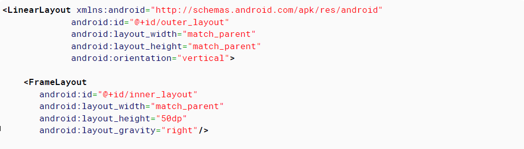 Ví dụ ở trên, với TextView, layout_width, layout_height, layout_gravity được lưu trữ trong LinearLayout.LayoutParams object và sử dụng bởi LinearLayout.